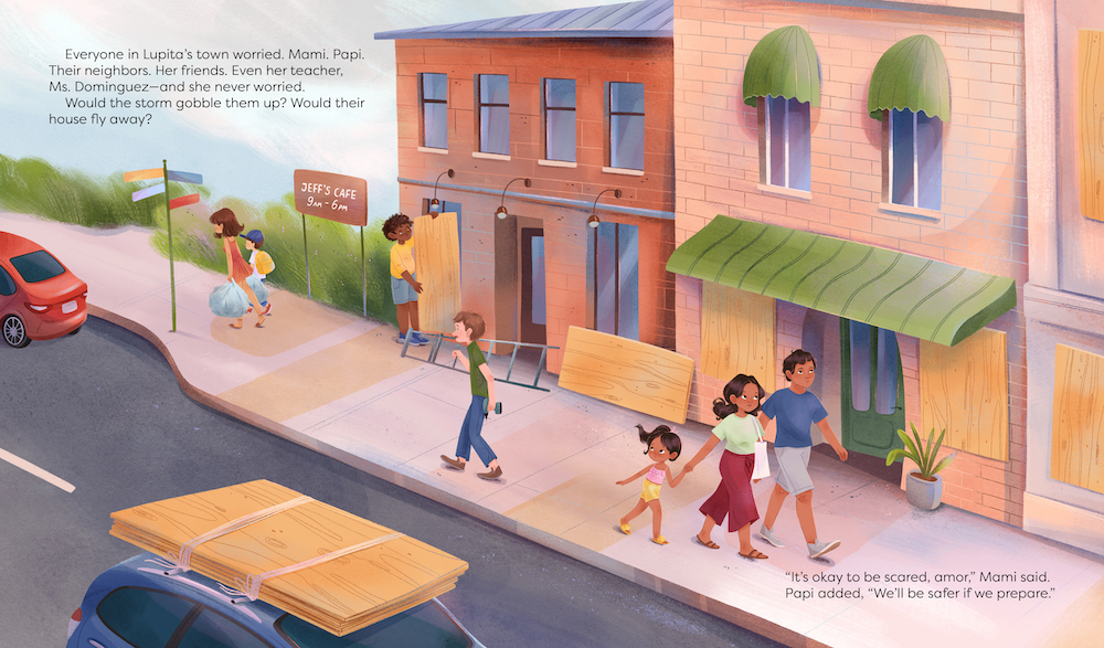 Shutters rattled. Wind howled. As a ferocious hurricane descends upon her town, Lupita finds two baby birds who have fallen out of their nest and brings them inside to shelter them from the storm. While Lupita and her family wait out the tempest, in order to alleviate her own fears she focuses on protecting the palomitas, hoping she can soon reunite them with their mother.