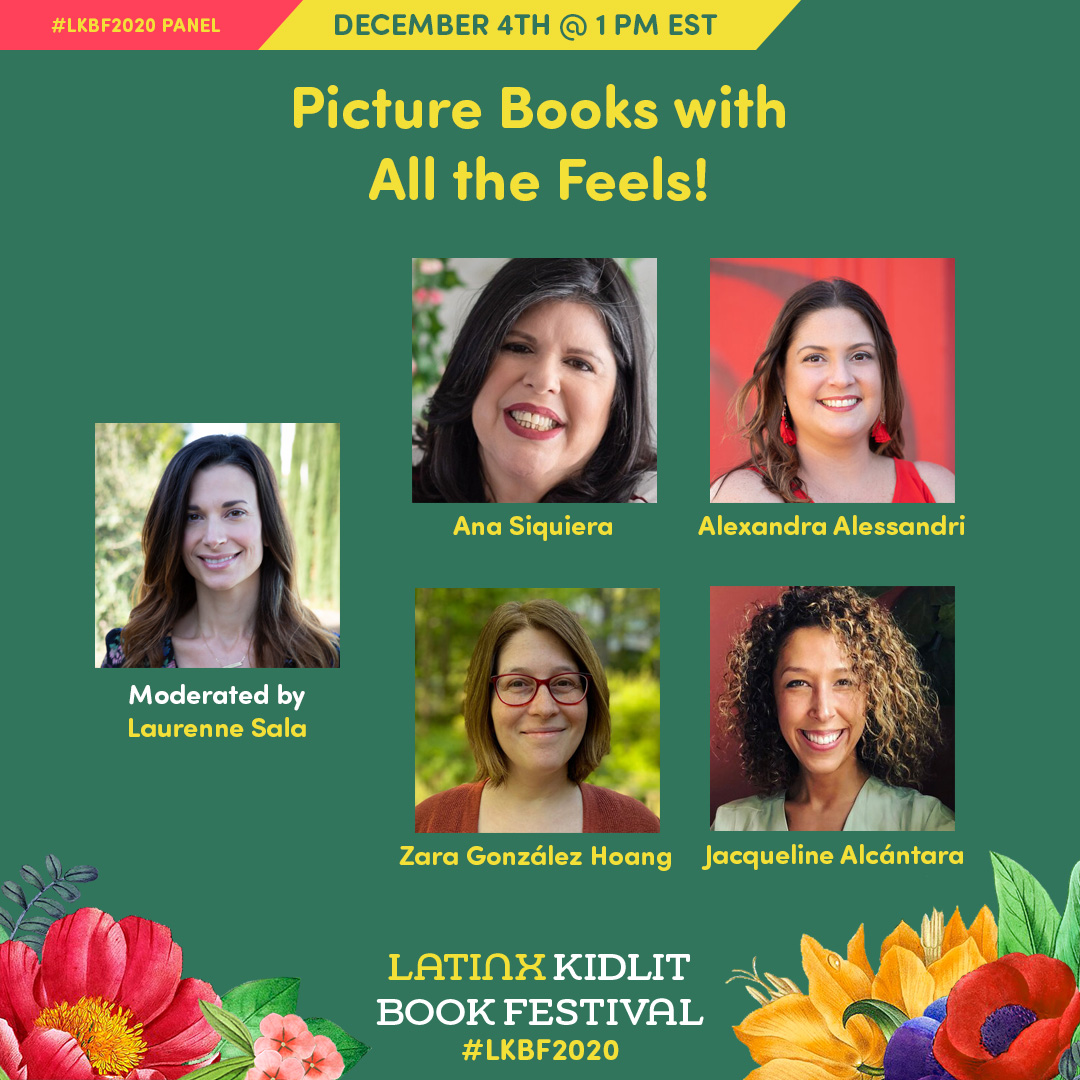 This December, I’m looking forward to the Latinx Kidlit Book Festival will be held December 4-5, 2020. You can find me on the Picture Books with All the Feels! panel alongside Jacqueline Alcántara, Zara González Hoang, Laurenne Sala, and Ana Siqueira on Fri., 12/4/2020 at 1:00 pm EST, but there are other amazing sessions going on that weekend. I can’t wait!