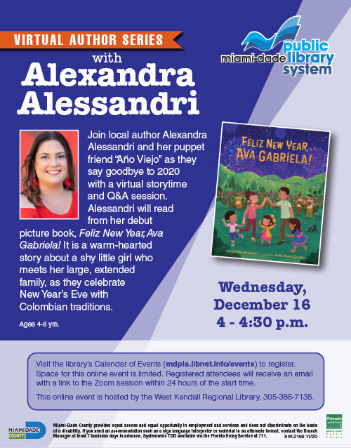 I’ll also be saying good-bye to 2020 with my Año Viejo doll during two virtual storytime and Q&A events hosted by the Miami Dade Public Library System: Wed., 12/16/20 from 4-4:30 pm EST and Tue., 12/29 from 4-4:30 pm EST! Space is limited in and registration is required.