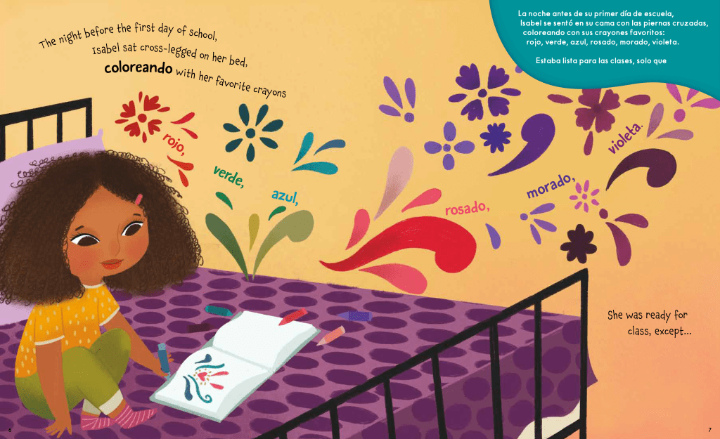 It’s been received so wonderfully. It received a starred review from School Library Journal and it was even on TV, on NBC10’s Page Turner segment! You can find out all the love Isabel and Her Colores is receiving here. Illustrated by Courtney Dawson and published by Sleeping Bear Press, the story follows Isabel as she starts school without knowing how to speak English. Ultimately, her artistic personality and her love of colors allow her to bridge the language barrier and make friends. Isabel and Her Colores Go to School is a bilingual story, with the text on the page in both English and Spanish. I translated the story, and while it was challenging, I’m incredibly proud of how it turned out!