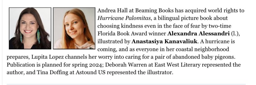 The cover for my next picture book, LUPITA’S HURRICANE PALOMITAS, was revealed in the Las Musas blog this past week! You can read the full post, including the backstory for the book, here.