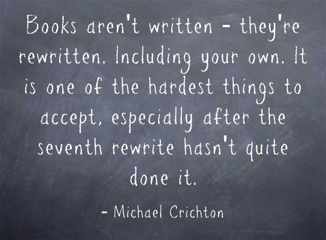 I’m in the thick of rewriting my WIP and I’m happy to say it’s finally flowing, that I’m finally progressing. I’ve covered 27K in two weeks, and I’m hopeful that in another three, I’ll be done with the first draft. I finally worked through my desire to go back and re-read/edit every. freaking. scene. It was a struggle, but I pushed through it. What helped me? Remembering this: