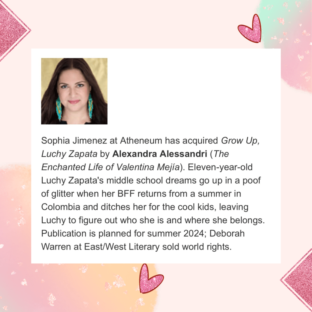 My next middle grade novel, GROW UP, LUCHY ZAPATA, will release summer 2024 from Atheneum Books for Young Readers. I’m thrilled to be working with my editor Sophia again!! A huge thank you to my agent Deborah Warren at East West Literary!